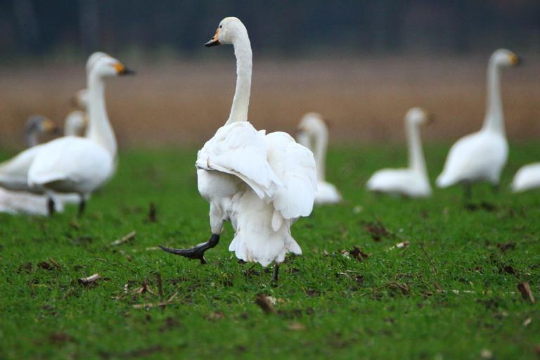 Keywords: swan whooper swan bird swans flock of birds migratory bird birds water bird field