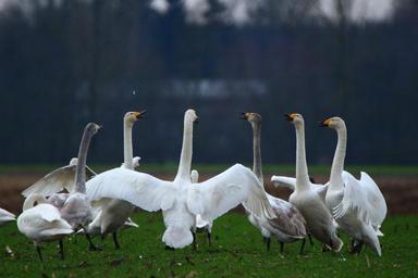 Keywords: swan whooper swan bird swans flock of birds migratory bird birds water bird field
