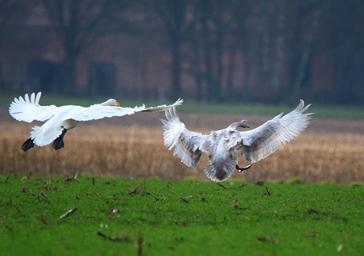 Keywords: swan whooper swan bird swans flock of birds migratory bird birds water bird field