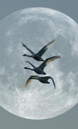 Keywords: swans moon moonlight silhouette birds flying artistic