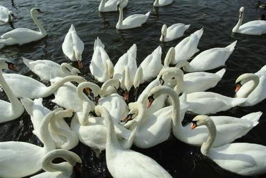 Keywords: swans water river swan bird feeding nature birds surface afloat feather beak white animal animals purity cute cohesion love