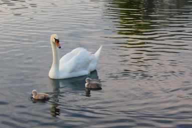 Keywords: swans young water bird cute floating grace swim pond peaceful wild baby white nature lake beak neck feather wing outdoors calm purity