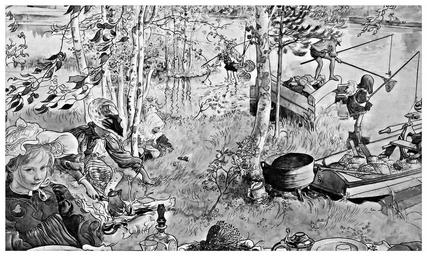 Keywords: sweden art swedish artist carl larsson crayfish fishing black and white photography popular traditionally