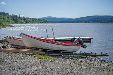 Keywords: sweden fjäll landscape boot bank lake ship water