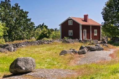 Keywords: sweden home red stone rock rush lonely building nature grass silent loneliness green sky blue landscape holiday house meadow summer