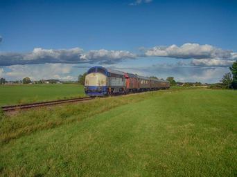 Keywords: sweden train travel transportation railroad railway sky clouds landscape scenic hdr