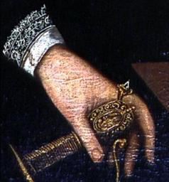 | Keywords: Swedish coronation ring.jpg Swedish coronation ring detail of a portrait of Sigismund III Vasa Szwedzki pierścień koronacyjny fragment portretu Zygmunta III Wazy Gold diamatus punctatus diamonds enamel cm 2 3 Owned by The Museum of the Czartoryski Princes in Kraków lost 1939 Object history < 1561 commission Eric XIV of Sweden ProvenanceEvent 1593 inheritance Sigismund III of Poland ProvenanceEvent 1594 transfer Poland century 19 purchase Czartoryski family 1939 destroyed by Wehrmacht soldiers From the Royal Casket also known as the ring of Władysław IV A square diamond so-called diamatus punctatus sharply cut in the form evoking a pyramid was associated with the Swedish dominion Due to the deposition of Sigismund III Vasa in Sweden only a copy executed for the coronation of Charles IX of Sweden in 1607 probably by the goldsmith Ruprecht Miller or Antonij Groot the Elder was found to complement the existing five Swedish royal insignia made for Eric XIV's coronation in 1561 The copy displayed in the Royal Armory in Stockholm Livrustkammaren inv no 32/24 is a gold ring adorned with black enamel smoky quartz diamatus punctatus and six small rock crystals http //www wilanow-palac pl/image php/16842/sz_boguszowiczportr_krol_zygm_iiizescen_zdobyciasmolenska_muz_hist_miast_lwowa_fot_i_levin jpg www wilanow-palac pl < 1561 Goldsmith Netherlands PD-Art PD-old-100 Jewels from the Polish Vasa Collection Swedish Royal Regalia Rings in art |
