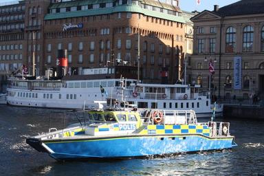 | Keywords: Swedish Police Boat April 29 2016.JPG sv Polisbåt i Nybrokajen 2016-04-29 17 05 41 own AleWi other versions cc-zero Police of Sweden Police boats in Sweden Watercraft in Sweden photographed in 2016 Nybrokajen April 2016 in Stockholm Police boats in motion 2016 in Norrmalm Sweden photographs taken on 2016-04-29 |