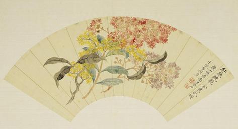 | Keywords: Sweet Osmanthus and Crape Myrtle.jpg Artwork Creator Yun Shouping en Sweet Osmanthus and Crape Myrtle 選自 清花卉畫冊 century 17 Technique album leaf ink colors paper cm 18 1 52 2 Institution National Palace Museum accession number place of creation place of discovery object history exhibition history credit line http //www npm gov tw/exh99/flower/en_02 html PD-old-100 Qing Dynasty Yun Shouping Paintings in the National Palace Museum Pleated fans | ||||