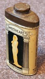 Keywords: Sweetheart Talcum Powder, foto 2.JPG Very old product that is not produced and not sold any more own 2013-12-22 12 45 01 Alf van Beem CC-zero Trademarked Talcum powder tins