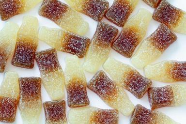 Keywords: sweets chewy cola bottles dessert candy food sugar snack confection tasty treat colorful unhealthy confectionery gummy jelly delicious yummy macro childhood soft gelatin brown texture eating