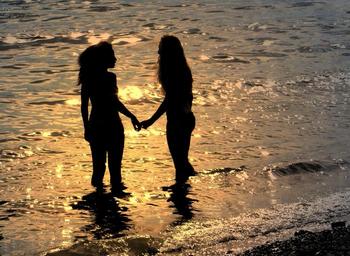 Keywords: swim cool down water women girlfriends contrast image