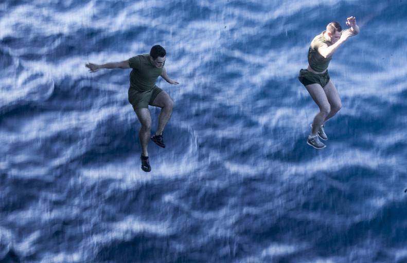 Keywords: swimming ocean jumping sea water blue ship military sailors happy marine relaxation recreation fun men