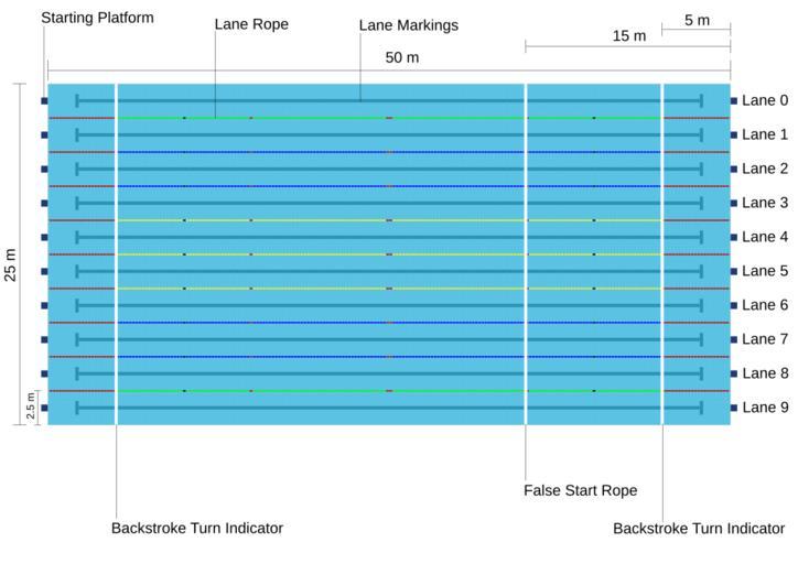 | Keywords: Swimming pool 50m 2008.svg en This is a simplified diagram of the FINA long course swimming pool standard used at the World Championships and Summer Olympics Source <blockquote>I created the image myself using Inkscape 0 45 1 as source for information I used http //www fina org/rules/english/facilities php FINA Facilities Rules and a photo of the swimming pool of the 2007 FINA World Championships from Flickr</blockquote> ru Разме ы ванны бассейна для Олимпийских Иг и Чемпионата и а Own 2008-04-08 Cmapm Cmapm Inkscape Swimming pools SVG sport field diagrams Olympic-size swimming pools |