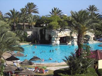 Keywords: swimming pool hotel pool holiday summer water swim palm trees tourism hotel complex tunisia building recovery
