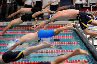 Keywords: swimming race competition start diving lanes swimmers dive splash water action athletes pool blocks