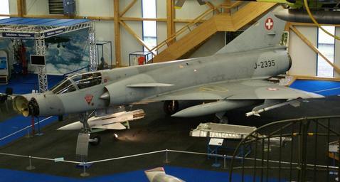 | Keywords: Swiss Air Force Dassault Mirage III S high frontal view.jpg Dassault Mirage III S interceptor as used by the Swiss Air Force from 1967 to 1999 Abfangjäger Dassault Mirage III S der Schweizer Luftwaffe im Dienst von 1967 bis 1999 Own photograph of an exhibit in the http //www airforcecenter ch/navy/mainnav php langy e Aviation Museum Flieger Flab Museum in Dübendorf Switzerland 2008-01-27 Sandstein Dassault Mirage IIIS on display Aircraft at Flieger-Flab-Museum Dübendorf | ||||