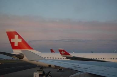 Keywords: swiss air plane swiss airplane travel sunset