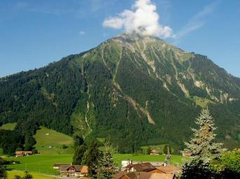 Keywords: switzerland landscape scenic sky clouds summer spring valley ravine village buildings country countryside