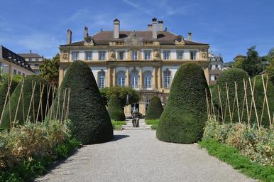 Keywords: switzerland neuchâtel hôtel sky clouds building grounds architecture trees plants statue sculpture nature outside summer spring hotel