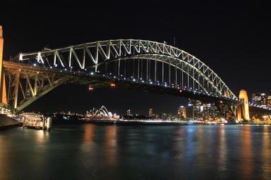 Keywords: arch architecture bridge steel arch bridge water waterfront amusement park outdoor skyline night Opera and harbour bridge Opera and harbour bridge