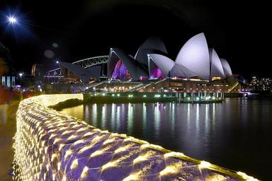 Keywords: sydney sydney opera house australia city landmark travel water cityscape landscape building tourist night colourful vivid sydney bridge