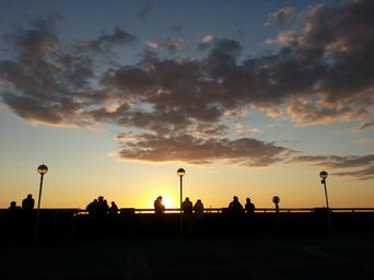 Keywords: sylt westerland abendstimmung afterglow dark sunset evening sky clouds dusk atmosphere sea twilight human romantic