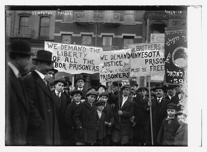 Keywords: Sympathy Labor Parade -- 1916 (LOC) (15112771653).jpg Bain News Service publisher Sympathy Labor Parade -- 1916 1915 1 negative glass ; 5 x 7 in or smaller Notes Title from unverified data provided by the Bain News Service on the negatives or caption cards Photograph shows crowd with signs reading We demand the liberty of all the labor prisoners we demand justice for the Minnesota prisoners and Our brothers in Minnesota prison must be free Another sign is in Yiddish Forms part of George Grantham Bain Collection Library of Congress Format Glass negatives Rights Info No known restrictions on publication Repository Library of Congress Prints and Photographs Division Washington D C 20540 USA http //hdl loc gov/loc pnp/pp print hdl loc gov/loc pnp/pp print General information about the Bain Collection is available at http //hdl loc gov/loc pnp/pp ggbain hdl loc gov/loc pnp/pp ggbain Higher resolution image is available Persistent URL http //hdl loc gov/loc pnp/ggbain 23312 hdl loc gov/loc pnp/ggbain 23312 Call Number LC-B2- 4064-10 https //www flickr com/photos/library_of_congress/15112771653/ Sympathy Labor Parade -- 1916 LOC LOC-image ggbain 23312 https //www flickr com/people/8623220 N02 The Library of Congress http //www loc gov/rr/print/195_copr html noknown The Library of Congress Flickr Commons PD-Bain The Library of Congress https //flickr com/photos/8623220 N02/15112771653 2016-09-08 09 10 48 pd Uncategorized 2016 December 20
