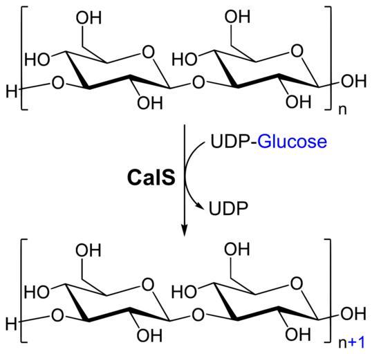 Keywords: Synthesis of callose.svg callose from UDP-glucose Callose aus UDP-glucose own Yikrazuul 2010-02-13 Polysaccharides Enzyme reactions