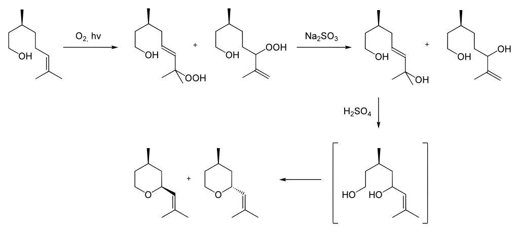 Keywords: Synthesis rosenoxide.svg en Synthesis of rosenoxide de Synthese von - -cis bzw - -trans-Rosenoxid Own Yikrazuul 5 1 09 Organic syntheses Rose oxide