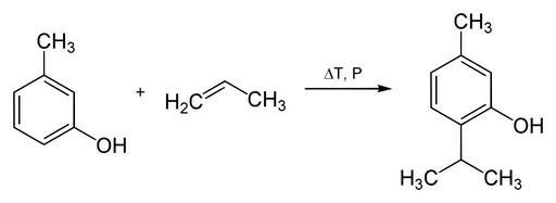 Keywords: Synthesis of thymol.svg Synthesis of thymol using m-cresol and propene en Synthese von Kresol ausgehend von m-Kresol und Propen de Own 09 04 08 Yikrazuul M-cresol Propylene Thymol Organic syntheses
