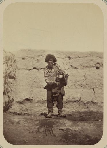 Keywords: Syr Darya Oblast. City of Ura Tiube and the Types of People Seen on Its Streets. Market Square. Water Carrier WDL10964.png Artwork ru Кун Александ Людвигович 1840 1888 гг fr Kun Aleksandr L 1840-1888 en Kun Aleksandr L 1840-1888 zh 亚历山大·L· ,1840-1888 年 pt Kun Aleksandr L 1840-1888 ar كُن، ألكسندر ل ، 1840-1888 es Kun Aleksandr L 1840-1888 ru Сы да ьинская область Го од У а-Тюбе и его уличные типы База ная площадь Водонос fr Oblast de Syr-Darya Ville d'Ura Tyube et types de personnes vues dans ses rues Place du marché Porteur d'eau en Syr Darya Oblast City of Ura Tiube and the Types of People Seen on Its Streets Market Square Water Carrier zh 锡尔河州 乌拉蒂尤布城及其集市广 街道上的各类人 担水人 pt Oblast de Sir Dária Cidade de Ura Tiube e os tipos de pessoas vistas nas ruas Praça do mercado ar منطقة سير داريا مدينة أورا تيوبي وأنواع الناس الذين يُرون في شوارعها ساحة السوق سقَّاء ru Эта фотог афия входит в этног афическую часть <em> Ту кестанского альбома </em><em></em>  всесто оннего исследования Цент альной Азии п едп инятого после того как в 1860-х годах в егионе установилось господство Российской импе ии Альбом созданный по аспо яжению гене ала Константина Пет овича фон Кауфмана 1818 1882 годы пе вого гене ал-губе нато а оссийского Ту кестана состоит из четы ех частей в шести томах «Часть а хеологическая» два тома «Часть этног афическая» два тома «Часть п омысловая» один том и «Часть исто ическая» один том Основным составителем альбома был оссийский востоковед Александ Людвигович Кун аботавший совместно с иколаем Венедиктовичем Богаевским В альбоме п едставлено около 1200 фотог афий а также а хитекту ные планы аква ельные исунки и ка ты «Часть этног афическая» включает в себя 491отдельную  фотог афию на 163 листах а фотог афиях изоб ажены п едставители азличных на одов егиона листы 1 33 повседневная жизнь и итуалы листы 34 91 а также виды де евень и го одов уличные то говцы и комме ческая деятельность листы 92 163 <br>База ы; Этног афические фотог афии; Рынки; Фотог афические исследования; По т етные фотог афии; По т еты; Тю кские на оды; Водоносы fr Cette photographie est extraite de la partie ethnographique de l'<em>Album du Turkestan</em> étude visuelle complète de l'Asie centrale entreprise après que l'Empire russe prit le contrôle de la région dans les années 1860 Commandé par le général Konstantin Petrovich von Kaufman 1818 1882 premier gouverneur général du Turkestan russe l'album est composé de six volumes en quatre parties  la partie archéologique deux volumes la partie ethnologique deux volumes la partie sur les métiers un volume et la partie historique un volume L'album fut essentiellement compilé par l'orientaliste russe Aleksandr L  Kun assisté de Nikolai V  Bogaevskii Il comporte près de 1200 photographies et inclut également des plans architecturaux des dessins à l'aquarelle et des cartes La partie ethnographique compte 491 photographies sur 163 planches montrant des individus des différentes peuplades de la région planches 1 à 33 des scènes de la vie quotidienne et des rites planches 34 à 91 ainsi que des vues de villages et de villes de vendeurs ambulants et d'activités commerciales planches 92 à 163 <br>Bazars; Photographies ethnographiques; Marchés; Inventaires photographiques; Portraits photographiques; Portraits; Peuples turciques; Porteurs d'eau en This photograph is from the ethnographical part of <em>Turkestan Album</em><em> </em>a comprehensive visual survey of Central Asia undertaken after imperial Russia assumed control of the region in the 1860s Commissioned by General Konstantin Petrovich von Kaufman 1818 82 the first governor-general of Russian Turkestan the album is in four parts spanning six volumes Archaeological Part two volumes ; Ethnographic Part two volumes ; Trades Part one volume ; and Historical Part one volume The principal compiler was Russian Orientalist Aleksandr L Kun who was assisted by Nikolai V Bogaevskii The album contains some 1 200 photographs along with architectural plans watercolor drawings and maps The Ethnographic Part includes 491 individual photographs on 163 plates The photographs show individuals representing the different peoples of the region Plates 1 33 ; daily life and rituals Plates 34 91 ; and views of villages and cities street vendors and commercial activities Plates 92 163 <br>Bazaars; Ethnographic photographs; Markets; Photographic surveys; Portrait photographs; Portraits; Turkic peoples; Water carriers zh 这张照片出自<em> 其斯 相册 </em>的民族部分,该相册是俄罗斯 国 19 世纪 60 年代取得中亚控制 后, 手制 的 部针对该 区的综合 图像调查记录 相册由俄罗斯驻 其斯 (俄罗斯 国中亚属 的名称)首任 康斯 丁·彼得罗维奇·凡· 夫曼(Konstantin Petrovich von Kaufman,1818 82 年)