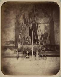 | Keywords: Syr-Darya Oblast. City of Turkestan. Cauldron Donated by Emir Timur Kuragan for the Tomb of Saint Sultan Akhmed Iassavi WDL3588.png Artwork ru Богаевский иколай Владими ович 1843 1912 гг fr Bogaevskii Nikolaï V 1843-1912 en Bogaevskii Nikolai V 1843-1912 zh 亚历山大·L· ,1840-1888 年 pt Bogaevskii Nikolai V 1843-1912 ar بوغافسكي، نيكولاي ف ، 1843-1912 es Bogaevskii Nikolai V 1843-1912 ru Сы да ьинская область Го од Ту кестан Котел поже твованный эми ом Тиму ом Ку аганом для г обницы святого султана Ахмеда Ясави fr Oblast de Syr-Darya Ville de Turkestan Chaudron donné par l'émir Timour Kuragan pour le sépulcre du vénérable sultan Akhmed Iassavi en Syr-Darya Oblast City of Turkestan Cauldron Donated by Emir Timur Kuragan for the Tomb of Saint Sultan Akhmed Iassavi zh 锡尔河 区 其斯 市 埃米尔帖 儿·库拉甘为 苏尔 ·艾哈迈德·亚萨维的墓 捐赠的大锅 pt Oblast de Sir Dária Cidade do Turquestão Pia ritual doada pelo Emir Timur Kuragan ao túmulo do santo sultão Ahmed Iassavi ar منطقة سير داريا مدينة تُرْكِستان قدر هبة من الأمير تيمور كوراغان لضريح الولي سلطان أحمد يسوي ru Эта фотог афия внут енней части мавзолея Ходжи Ахмеда Ясави в Яси сов еменный Ту кестан Казахстан соде жится в а хеологической части <em> Ту кестанского альбома </em> Шеститомное фотог афическое исследование было подготовлено и издано в 1871 1872 гг под пат онажем гене ала Константина П фон Кауфмана пе вого гене ал-губе нато а 1867 1882 гг Ту кестана как называли в то в емя те ито ию Цент альной Азии п инадлежавшую Российской импе ии Яси ассоции уется с суфийским мистиком Ходжой Ахмедом Ясави 1103 1066 гг великая слава кото ого побудила Тиму а Таме лана пост оить мемо иальную г обницу <em>ханаку</em> на месте его захо онения авзолею пост оенному в 1396 1398 гг п исущи ха акте ные че ты тиму идской а хитекту ы в то в емя пе еживавшей свой асцвет в Сама канде а снимке видна внут енняя часть основного ст оения с большой б онзовой итуальной чашей для воды изысканно ук ашенной ботаническими узо ами и пе сидско-а абскими надписями а пе еднем плане видны две массивные б онзовые ножки выполненные в виде восходящих к угов Высота чаши установленной на каменнoй подставке составляет около одного мет а К чаше наклонены де евянные шесты подобные азмещаемым на надг обных камнях а заднем плане неясно азличимы ки пичные стены мавзолея имеющего к естооб азный план В цент е находится ниша венчающаяся сталактитовым сводом <br>Котлы; Ясави Ахмед уме в 1166 г ; Фотог афические исследования; П едметы елигиозного назначения; огильные памятники; Г обницы fr Cette photographie de l'intérieur du mausolée de Khodzha Ahmed Iassavi à Yasi au Turkestan actuel Kazakhstan est extraite de l'ouvrage archéologique <em>Album du Turkestan</em> Cet inventaire photographique en six volumes fut réalisé entre 1871 et 1872 sous le patronage du général Konstantin P von Kaufman premier gouverneur général 1867-1882 du Turkestan nom donné aux territoires d'Asie centrale de l'Empire russe La ville de Yasi est associée au mystique soufi Khodzha Ahmed Iassavi 1103-1166 dont la renommée était telle que Tamerlan fit construire un sanctuaire commémoratif <em>khanaka</em> sur le site de sa tombe Bâti de 1396 à 1398 le mausolée présente les caractéristiques de l'architecture timuride en pleine apogée à Samarcande à cette époque Cette vue présente l'intérieur de la structure principale avec un grand bassin en bronze dédié aux ablutions rituelles et richement décoré de figures à fleurs et d'inscriptions perso-arabes Au premier plan deux bougeoirs massifs en bronze sont formés de cercles ascendants La hauteur du bassin placé sur une base en maçonnerie est d'un mètre environ Des bâtons de bois semblables à ceux qui étaient disposés sur les pierres tombales sont appuyés contre le bassin En arrière-plan les murs de briques du mausolée construit selon un plan cruciforme sont à peine visibles Au centre une niche semble être surplombée d'une voûte en stalactites <br>Chaudrons; I͡Asavi Akhmed mort en 1166; Inventaires photographiques; Articles religieux; Monuments funéraires; Tombes en This photograph of the interior of the mausoleum of Khodzha Ahmed Iassavi in Yasi present-day Turkestan Kazakhstan is from the archeological part of <em>Turkestan Album</em> The six-volume photographic survey was produced in 1871-72 under the patronage of General Konstantin P von Kaufman the first governor-general 1867-82 of Turkestan as the Russian Empire s Central Asian territories were called Yasi is associated with the Sufi mystic Khodzha Ahmed Iassavi 1103-66 wh