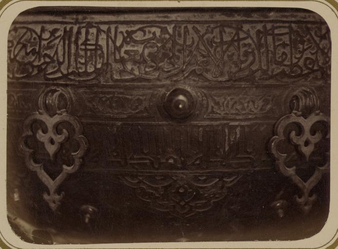 Keywords: Syr-Darya Oblast. City of Turkestan. Beginning of the Inscription Bordering the Exterior of the Cauldron Located in the Tomb of Saint Sultan Akhmed Iassavi WDL3596.png Artwork ru Богаевский иколай Владими ович 1843 1912 гг fr Bogaevskii Nikolaï V 1843-1912 en Bogaevskii Nikolai V 1843-1912 zh 亚历山大·L· ,1840-1888 年 pt Bogaevskii Nikolai V 1843-1912 ar بوغافسكي، نيكولاي ف ، 1843-1912 es Bogaevskii Nikolai V 1843-1912 ru Сы да ьинская область Го од Ту кестан ачало надписи окаймляющей на ужную сто ону котла находящегося в г обнице святого султана Ахмеда Яссави fr Oblast de Syr-Darya Ville de Turkestan Début de l'inscription bordant l'extérieur du chaudron situé dans le sépulcre du vénérable sultan Akhmed Iassavi en Syr-Darya Oblast City of Turkestan Beginning of the Inscription Bordering the Exterior of the Cauldron Located in the Tomb of Saint Sultan Akhmed Iassavi zh 锡尔河 区 其斯 市 苏尔 ·艾哈迈德·亚萨维墓 内的大锅 外表环绕的铭文 头部分 pt Oblast de Sir Dária Cidade do Turquestão Início da inscrição que rodeia o exterior da pia ritual localizada no túmulo do santo sultão Ahmed Iassavi ar منطقة سير داريا مدينة تُرْكِستان بداية النقش الذي يُؤطِّر الجزء الخارجي للميضأة الموجودة في ضريح الولي سلطان أحمد يسوي ru Эта фотог афия элемента итуальной чаши для воды внут и мавзолея Ходжи Ахмеда Ясави в Яси сов еменный Ту кестан Казахстан соде жится в а хеологической части <em> Ту кестанского альбома </em> Шеститомное фотог афическое исследование было подготовлено и издано в 1871 1872 гг под пат онажем гене ала Константина П  фон Кауфмана пе вого гене ал-губе нато а 1867 1882 гг Ту кестана как называли в то в емя те ито ию Цент альной Азии п инадлежавшую Российской импе ии Яси ассоции уется с суфийским мистиком Ходжой Ахмедом Ясави 1103 1066 гг великая слава кото ого побудила Тиму а Таме лана пост оить мемо иальную г обницу <em>ханаку</em> на месте его захо онения авзолею пост оенному в 1396 1398 гг п исущи ха акте ные че ты тиму идской а хитекту ы в то в емя пе еживавшей свой асцвет в Сама канде а снимке видна часть большой б онзовой итуальной чаши для воды; в надписи на чаше указано что она была поже твована Тиму ом Чаша ук ашена изысканными ботаническими фигу ами и пе сидско-а абскими надписями аве ху находится полоса с надписью выполненной письмом насх и пе еплетающейся с узо ом из завитков Под полосой видны деко ативные б онзовые элементы и еще одна надпись угловатыми буквами а езной пове хности в нижней части фотог афии видна а абеска Высота чаши составляет около одного мет а <br>Котлы; адписи; Ясави Ахмед уме в 1166 г ; Фотог афические исследования; П едметы елигиозного назначения; огильные памятники; Г обницы fr Cette photographie d'un détail du bassin dédié aux ablutions rituelles du mausolée de Khodzha Akhmed Iassavi à Yasi au Turkestan actuel Kazakhstan est extraite de l'ouvrage archéologique <em>Album du Turkestan</em> Cet inventaire photographique en six volumes fut réalisé entre 1871 et 1872 sous le patronage du général Konstantin P von Kaufman premier gouverneur général 1867-1882 du Turkestan nom donné aux territoires d'Asie centrale de l'Empire russe La ville de Yasi est associée au mystique soufi Khodzha Akhmed Iassavi 1103-1166 dont la renommée était telle que Tamerlan fit construire un sanctuaire commémoratif <em>khanaka</em> sur le site de sa tombe Bâti de 1396 à 1398 le mausolée présente les caractéristiques de l'architecture timuride en pleine apogée à Samarcande à cette époque Cette vue partielle du grand bassin dédié aux ablutions rituelles montre l'inscription indiquant qu'il fut donné par Tamerlan Le bassin est richement décoré de figures à fleurs et d'inscriptions perso-arabes Dans la partie supérieure de la photographie une bande d'inscription en écriture naskhi entrelacée de motifs de vrilles apparaît Des armatures décoratives en bronze et une autre inscription avec des lettres angulaires sont visibles sous cette bande Au bas de la photographie la surface bombée est ornée d'une arabesque Le bassin mesure environ un mètre de hauteur <br>Chaudrons; Inscriptions; I͡Asavi Akhmed mort en 1166; Inventaires photographiques; Articles religieux; Monuments funéraires; Tombes en This photograph of a detail of a ritual basin in the interior of the mausoleum of Khodzha Akhmed Iassavi in Yasi present-day Turkestan Kazakhstan is from the archeological part of <em>Turkestan Album</em> The six-volume photographic survey was produced in 1871-72 under the patronage of General Konstantin P von Kaufman the first governor-general