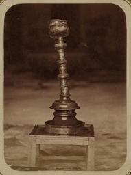 | Keywords: Syr-Darya Oblast. City of Turkestan. Mosque of Saint Sultan Akhmed Iassavi. Candlestick Donated by Emir Timur Kuragan WDL3878.png Artwork ru Богаевский иколай Владими ович 1843 1912 гг fr Bogaevskii Nikolaï V 1843-1912 en Bogaevskii Nikolai V 1843-1912 zh 亚历山大·L· ,1840-1888 年 pt Bogaevskii Nikolai V 1843-1912 ar بوغافسكي، نيكولاي ف ، 1843-1912 es Bogaevskii Nikolai V 1843-1912 ru Сы да ьинская область Го од Ту кестан ечеть святого Султана Ахмеда Ясави Подсвечник поже твованный эми ом Тиму ом Ку аганом fr Oblast de Syr-Darya Ville de Turkestan Mosquée du sultan Akhmed Iassavi Chandelier donné par l'émir Timour Kuragan en Syr-Darya Oblast City of Turkestan Mosque of Saint Sultan Akhmed Iassavi Candlestick Donated by Emir Timur Kuragan zh 锡尔河 区 其斯 市 苏尔 ·艾哈迈德·亚萨维清 寺 埃米尔帖 儿·库拉甘捐赠的烛台 pt Oblast de Sir Dária Cidade do Turquestão Mesquita do santo sultão Ahmed Iassavi Castiçal doado pelo emir Timur Kuragan ar منطقة سير-داريا مدينة تُرْكِستان مسجد الولي سلطان أحمد يسوي شمعدان وهبه الأمير تيمور كوراغان ru Эта фотог афия элемента внут и мавзолея Ходжи Ахмеда Ясави в Яси сов еменный Ту кестан Казахстан соде жится в а хеологической части <em> Ту кестанского альбома </em> Шеститомное фотог афическое исследование было подготовлено и издано в 1871 1872 гг под пат онажем гене ала Константина П фон Кауфмана пе вого гене ал-губе нато а 1867 1882 гг Ту кестана как называли в то в емя те ито ию Цент альной Азии п инадлежавшую Российской импе ии Яси ассоции уется с суфийским мистиком Ходжой Ахмедом Ясави 1103 1066 гг великая слава кото ого побудила Тиму а Таме лана пост оить мемо иальную г обницу <em>ханаку</em> на месте его захо онения авзолею пост оенному в 1396 1398 гг п исущи ха акте ные че ты тиму идской а хитекту ы в то в емя пе еживавшей свой асцвет в Сама канде а снимке показан один из нескольких больших б онзовых подсвечников для итуальных целей кото ые п едположительно были поже твованы Таме ланом Хотя этот подсвечник менее массивный чем па а подсвечников возле б онзовой итуальной чаши его высота составляет около мет а Подсвечник немного пов ежден Сложная к углая основа подсвечника по частям пе еходит в ножку с выг ави ованными ботаническими а абесками кото ая выделяется луковицеоб азными фо мами Подсвечник увенчан цветочным узо ом ве оятно цветком лотоса Фотог аф поставил его на де евянный табу ет чтобы обеспечить необходимый угол съемки <br>Подсвечники; Ясави Ахмед уме в 1166 г ; Фотог афические исследования; П едметы елигиозного назначения; огильные памятники; Г обницы fr Cette photographie d'un détail de l'intérieur du mausolée de Khodzha Akhmed Iassavi à Yasi au Turkestan actuel Kazakhstan est extraite de l'ouvrage archéologique <em>Album du Turkestan</em> Cet inventaire photographique en six volumes fut réalisé entre 1871 et 1872 sous le patronage du général Konstantin P von Kaufman premier gouverneur général 1867-1882 du Turkestan nom donné aux territoires d'Asie centrale de l'Empire russe La ville de Yasi est associée au mystique soufi Khodzha Akhmed Iassavi 1103-1166 dont la renommée était telle que Tamerlan fit construire un sanctuaire commémoratif <em>khanaka</em> sur le site de sa tombe Bâti de 1396 à 1398 le mausolée présente les caractéristiques de l'architecture timuride en pleine apogée à Samarcande à cette époque Cette vue montre un grand chandelier en bronze utilisé à des fins rituelles et vraisemblablement donné par Tamerlan Bien qu'il soit moins imposant qu'une paire de chandeliers exposés près du bassin en bronze dédié aux ablutions rituelles ce chandelier quelque peu endommagé est plus grand et mesure un mètre de hauteur environ La tige s'élève sur une base circulaire complexe et forme des segments gravés d'arabesques de fleurs et marqués par des bulbes évasés Le sommet de l'objet est composé d'un ornement à fleurs peut-être un lotus Pour obtenir un meilleur angle de prise de vue le photographe l'a placé sur un tabouret en bois <br>Bougeoirs; I͡Asavi Akhmed mort en 1166; Inventaires photographiques; Articles religieux; Monuments funéraires; Tombes en This photograph of a detail from the interior of the mausoleum of Khodzha Akhmed Iassavi in Yasi present-day Turkestan Kazakhstan is from the archeological part of <em>Turkestan Album</em> The six-volume photographic survey was produced in 1871-72 under the patronage of General Konstantin P von Kaufman the first governor-general 1867-82 of Turkestan as the Russian Empire s Central Asian territories were called Yasi 