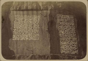 | Keywords: Syr-Darya Oblast. Inscription Carved on One of the Cliffs of Ilan Utinsk Gorge WDL3887.png Artwork ru Богаевский иколай Владими ович 1843 1912 гг fr Bogaevskii Nikolaï V 1843-1912 en Bogaevskii Nikolai V 1843-1912 zh 亚历山大·L· ,1840-1888 年 pt Bogaevskii Nikolai V 1843-1912 ar بوغافسكي، نيكولاي ف ، 1843-1912 es Bogaevskii Nikolai V 1843-1912 ru Сы да ьинская область адпись высеченная на одной из скал Илан-Утинского ущелья fr Oblast de Syr-Daria Inscription sculptée sur l une des falaises de la gorge d Ilan Utinsk en Syr-Darya Oblast Inscription Carved on One of the Cliffs of Ilan Utinsk Gorge zh 锡尔河 区 兰尤丁 克峡谷 座峭壁上雕刻的铭文 pt Oblast de Sir Dária Inscrição esculpida em um dos penhascos da Garganta de Ilan Utinsk ar منطقة سير-داريا نقش محفور على أحد أجراف وادي إيلان يوتنسك ru Эта фотог афия панелей с высеченными на них надписями в Джалан-Утинском или Илан-Утинском ущелье асположенном на те ито ии сов еменного Узбекистана соде жится в а хеологической части <em> Ту кестанского альбома </em> Шеститомное фотог афическое исследование было подготовлено и издано в 1871 1872 гг под пат онажем гене ала Константина П фон Кауфмана пе вого гене ал-губе нато а 1867 1882 гг Ту кестана как называли в то в емя те ито ию Цент альной Азии п инадлежавшую Российской импе ии ебольшая ека Джалан-Уты п отекает к юго-западу от Ташкента в нап авлении го ода Джизак кото ый асположен в севе ной части Сама кандской области входившей в состав Российской импе ии Че ез этот го од основанный еще в X веке п оходил Великий шелковый путь Осенью 1866 г Джизак п ев атился в ст атегически важную точку для оссийских войск воевавших п отив эми а Буха ы В ходе п едва ительных манев ов одно из войсковых соединений асположилось лаге ем на лугу возле входа в Джалан-Утинское ущелье В октяб е 1866 г оссийские войска взяли Джизак Джалан-Утинское ущелье п едставляет собой ха акте ную особенность данного егиона пустынный ландшафт кото ого из езан глубокими услами д евних ек Эти надписи высеченные на одном из скалистых склонов ущелья демонст и уют высокое масте ство в пе сидско-а абском письме слева сулюс сп ава насх Подобные надписи восхваляют выдающиеся дела благочестивых людей <br>А хеологические объекты; Скалы; адписи; Фотог афические исследования fr Cette photographie des panneaux d inscription sculptés sur la gorge de Djalan-Uty ou Ilan Utinsk dans l actuel Ouzbékistan est extraite de l ouvrage archéologique <em>Album du Turkestan</em> Cet inventaire photographique en six volumes fut réalisé entre 1871 et 1872 sous le patronage du général Konstantin P von Kaufman premier gouverneur général 1867-1882 du Turkestan nom donné aux territoires d'Asie centrale de l'Empire russe Le petit fleuve de Djalan Uty coule dans la région située au sud-ouest de Tachkent vers la ville de Djizak sise au nord de l oblast de Samarcande sous l Empire russe Établie dès le X<sup>e</sup> siècle la ville de Djizak était située sur la légendaire route de la soie l automne 1866 Djizak a occupé une place stratégique dans la campagne russe contre l émir de Boukhara Lors des manœuvres initiales un corps de troupes campa dans une prairie à proximité de l ouverture de la gorge de Djalan-Uty En octobre 1866 les forces russes prirent la ville de Djizak La gorge de Djalan-Uty est une particularité d une région où d anciens fleuves ont creusé des chenaux profonds à travers le paysage aride Ces panneaux d inscription qui sont sculptés sur une falaise de la gorge sont calligraphiés en une écriture cursive perso-arabe d une qualité artistique considérable thoulouth à gauche et naskhi à droite Ces inscriptions proclament les actes remarquables de personnalités saintes <br>Sites archéologiques; Falaises; Inscriptions; Inventaires photographiques en This photograph of inscription panels carved at the Djalan-Uty or Ilan Utinsk Gorge in present-day Uzbekistan is from the archeological part of <em>Turkestan Album</em> The six-volume photographic survey was produced in 1871 72 under the patronage of General Konstantin P von Kaufman the first governor-general 1867 82 of Turkestan as the Russian Empire s Central Asian territories were called The small Djalan-UtyRiver flows in the region southwest of Tashkent in the direction of the town of Jizzakh located in the northern part of Imperial Russia s Samarkand Oblast Settled as early as the 10th century Jizzakh was on the fabled Silk Road In the fall of 1866 Jizzakh occupied a strategic place in the Russian campaign against the Emir of Bukhara During initial maneuvers a body of troops encamped on a meadow near the opening to the Djalan-Uty G