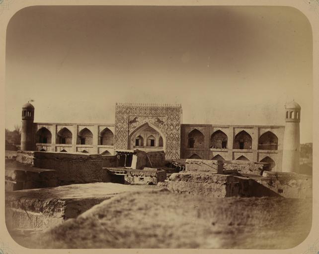 Keywords: Syr-Darya Oblast. Ura-Tyube. Madrasah of Rustem-Bek WDL3880.png Artwork ru Богаевский иколай Владими ович 1843 1912 гг fr Bogaevskii Nikolaï V 1843-1912 en Bogaevskii Nikolai V 1843-1912 zh 亚历山大·L· ,1840-1888 年 pt Bogaevskii Nikolai V 1843-1912 ar بوغافسكي، نيكولاي ف ، 1843-1912 es Bogaevskii Nikolai V 1843-1912 ru Сы да ьинская область У а-Тюбе ед есе Рустем-Бека fr Oblast de Syr-Darya Ura-Tyube Madrasa de Rustem-Bek en Syr-Darya Oblast Ura-Tyube Madrasah of Rustem-Bek zh 锡尔河 区 乌拉秋 鲁斯特姆- 克伊斯兰教学校 pt Oblast de Sir Dária Ura-Tyube Madrassa de Rustem-Bek ar منطقة سير-داريا أورا-تيوبي مدرسة رُستم بك ru Эта фотог афия мед есе Рустем-Бека в У а-Тюбе сов еменный Иста авшан Таджикистан соде жится в а хеологической части <em> Ту кестанского альбома </em> Шеститомное фотог афическое исследование было подготовлено и издано в 1871 1872 гг под пат онажем гене ала Константина П фон Кауфмана пе вого гене ал-губе нато а 1867 1882 гг Ту кестана как называли в то в емя те ито ию Цент альной Азии п инадлежавшую Российской импе ии У а-Тюбе У отеппа на таджикском языке является одним из д евнейших поселений в Цент альной Азии Го од У а-Тюбе асположенный возле еки Сы да ьи п иблизительно в 80 километ ах к юго-западу от го ода Худжанд п оцветал п и п авлении династии Саманидов в X XI веках Как многие д угие го ода в этой местности он был азг аблен монголами в начале XIII века Го од был воз ожден п и п авлении Тиму идов в конце XIV и в XV веках а в XVI веке он пе ешел к буха ской династии Шейбанидов В конце XVIII века он получил автономию пе ед тем как стать частью Кокандского ханства У а-Тюбе был завоеван Российской импе ией в октяб е 1866 года В числе его елигиозных соо ужений было <em>мед есе</em> показанное на снимке В этом двухэтажном ст оении созданном в стиле XVI века имеются сводчатые комнаты для п оживания и обучения и большой внут енний дво а главном входе асположена а ка <em>айвана</em> сводчатого зала с одним отк ытым концом ок уженного с т ех сто он стенами а по бокам от фасада стоят угловые башни Фасад айвана обильно пок ыт г убой деко ативной отделкой кото ая ве оятно была добавлена к пе воначальному зданию позднее возможно в XIX веке а пе еднем плане видны жилища из саманного ки пича <br>А хеологические объекты; Исламская а хитекту а; ед есе; Фотог афические исследования fr Cette photographie de la madrasa de Rustem-Bek à Ura-Tyube ville aujourd'hui appelée Istaravshan Tadjikistan est extraite de l'ouvrage archéologique <em>Album du Turkestan</em> Cet inventaire photographique en six volumes fut réalisé de 1871 à 1872 sous le patronage du général Konstantin P von Kaufman premier gouverneur général 1867-1882 du Turkestan nom donné aux territoires d'Asie centrale de l'Empire russe Ura-Tyube en tadjik Ura-Teppa est la colonie la plus ancienne d'Asie centrale Située près du fleuve Syr-Darya à quelque 80 kilomètres au sud-ouest de Khodjent la ville d'Ura-Tyube prospéra sous la dynastie samanide aux X<sup>e</sup> et XI<sup>e</sup> siècles Comme de nombreuses cités de la région elle fut mise à sac par les Mongols au début du XIII<sup>e</sup> siècle Elle connut un renouveau sous les Timurides à la fin du XIV<sup>e</sup> siècle et au XV<sup>e</sup> siècle et se rendit aux Chaybanides de Boukhara au XVI<sup>e</sup> siècle la fin du XVIII<sup>e</sup> siècle elle acquit son autonomie avant d'être intégrée au khanat de Kokand Ura-Tyube fut prise par les Russes en octobre 1866 La <em>madrasa</em> présentée ici était l'une des institutions religieuses de la ville La conception de la structure à deux étages est typique du XVI<sup>e</sup> siècle avec des modules en arche où les érudits vivaient et étudiaient et une grande cour intérieure L'entrée principale est dotée d'un arceau d'<em>aivan</em> salle voûtée dotée de trois murs et d'un côté ouvert et des tours se dressent aux angles de part et d'autre de la façade La façade de l'aivan est abondamment décorée d'ornements sommaires qui semblent ultérieurs à la structure d'origine et datent peut-être du XIX<sup>e</sup> siècle Des maisons d'adobe sont visibles au premier plan <br>Sites archéologiques; Architecture islamique; Madrasas; Inventaires photographiques en This photograph of the Rustem-Bek Madrasah in Ura-Tyube present-day Istarawshan Tajikistan is from the archeological part of <em>Turkestan Album</em> The six-volume photographic survey was produced in 1871 72 under the patronage of General Konstantin P von Kaufman the first governor-general 1867 82 of 
