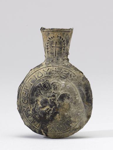 Keywords: Syrian - Pilgrim Flask of Saint Sergios - Walters 55105 - Side B.jpg This rare and beautifully preserved flask is one of the first to depict St Sergios on horseback surrounded by the inscription Blessing of the Lord of Saint Sergios The cult of this 3rd-century saint reached its height of popularity in the 6th century at the site of his martyrdom in Sergiopolis in northern Syria century 6 7 Late Antique tin-lead alloy cm 5 4 3 81 1 59 accession number 55 105 34878 Private collection Haddad date and mode of acquisition unknown Antiquarium Ltd Fine Ancient Art Gallery New York by purchase date of acquisition unknown Walters Art Museum 2000 by purchase Museum purchase with funds provided by the W Alton Jones Foundation Acquisition Fund 2000 Translation on both sides + Blessing of the Lord from the sanctuary of Saint Sergius Treasures of Heaven The Cleveland Museum of Art Cleveland; The Walters Art Museum Baltimore; The British Museum London 2010-2011 place of origin Rusafah Syria Walters Art Museum license Byzantine and Early Russian art in the Walters Art Museum Ceramics from Syria Media contributed by the Walters Art Museum needs category review |