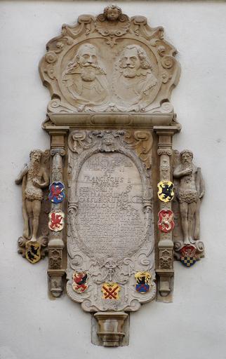 Keywords: Szczecin Zamek Ksiazat Pomorskich tablica skrzydlo muzealne.jpg pl Tablica erekcyjna z wizerunkiem księcia Filipa II i Franciszka I na skrzydle muzealnym - Zamek Książąt Pomorskich w Szczecinie own Kapitel 2009 Szczecin Castle Francis I of Pomerania Philip II of Pomerania |