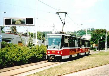 | Keywords: T6A5 v Praze - 25.jpg Tramvaj typu Tatra T6A5 v Praze http //www mujweb cz/www/mhd_jama/galery/2mesta/praha25 jpg between 1998 2009 Vít Javůrek PermissionOTRS 2009021510024408 Vít Javůrek Tram 8641 Prague Tram loop Nádraží Braník Flip-dot road traffic information displays in Prague |