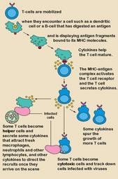 | Keywords: T cell activation.png T cell activation svg The T lymphocyte activation pathway is triggered when a T cell encounters its cognate antigen coupled to a MHC molecule on the surface of an infected cell or a phagocyte T cells contribute to immune defenses in two major ways some direct and regulate immune responses; others directly attack infected or cancerous cells http //www niaid nih gov/publications/immune/the_immune_system pdf The Immune System pdf NIH Publication No 03 “5423 September 2003 modifications September 4 2006 Template drawing and caption text from The Immune System any modifcations made by myself are released into the public domain Original work of the US Federal Government - public domain Image T_cell_activation-tr png Image T_cell_activation-es png PD-USGov DO11 10 Microbiology Biology diagrams Immunology T cells |