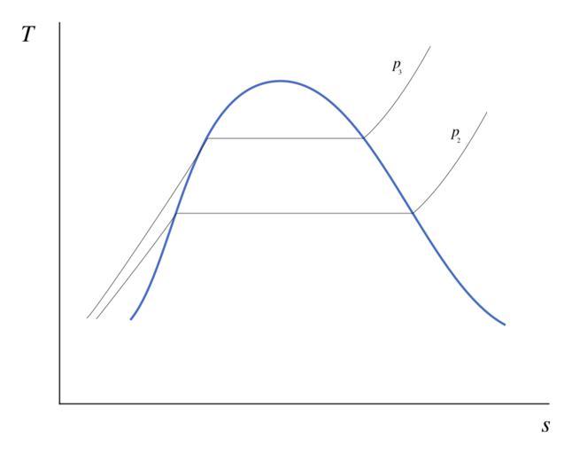 | Keywords: T-s diagram for a liquid-vapor.svg en Generic representation of a temperature-entropy diagram for a fluid near its liquid/vapor phase transition The blue curve represents the saturation curve black lines are constant pressure isochoric curves 2013 own Olivier Cleynen other versions cc-zero SVG physics Uploaded with UploadWizard Temperature-entropy diagrams |