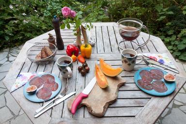 Keywords: table breakfast garden in the free summer cover tee melon tomato paprika cattle ham air dried bresaola italian cup pepper mill salt vessel gedeckter table