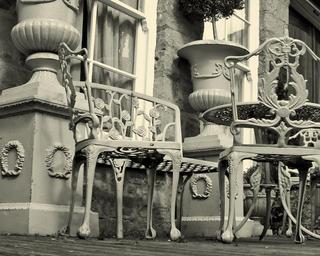 Keywords: table chairs decorations terrace iron ironwork background job relaxation