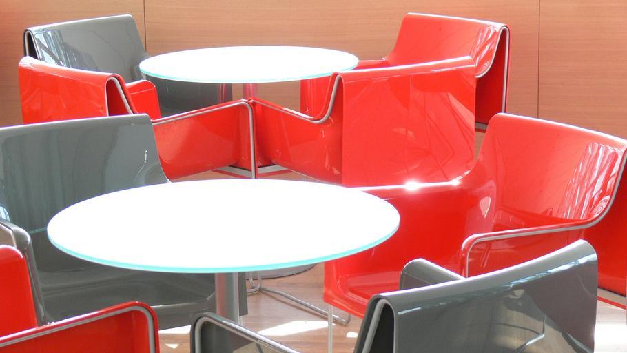 Keywords: table chairs farbenspiel break gastronomy seats red grey white seat