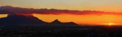 Keywords: table mountain evening sky setting sun sea cape town south africa abendstimmung sunset