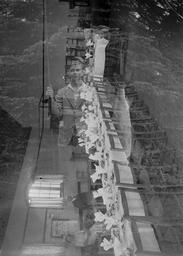 | Keywords: Table set for a wedding reception (1295121).jpg Abstract Double exposure - also an image of a young man holding a fishing rod and large fish Size mm 163 exhibition history Institution National Library of Wales Technique negative glass plate negative bw object history CC-zero Creator Percy Benzie Abery 1295121 Table set for a wedding reception 1295121 Uploaded with GWToolset Table set for a wedding reception 1295121 http //dams llgc org uk/iiif/test/image/1295121/full/1000 /0/default jpg Images uploaded as part of NLW - WMUK collaboration Photographs by P B Abery in the National Library of Wales |