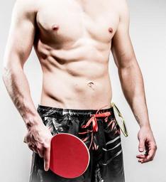 Keywords: table tennis ping-pong ping pong swimming trunks beach abdominals man girl upper body male summer belly trained strong young man sport