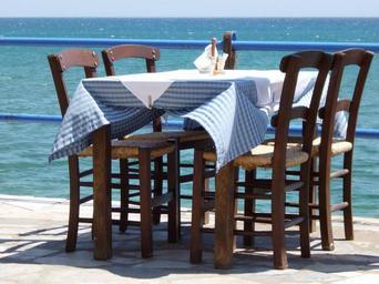 Keywords: table wood seat chair sea blue summer holiday island of crete