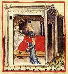 | Keywords: Tacuin orge29.jpg en Savich or Barley Soup Savich id est Pultes Ordei Nature Cold and dry in the second degree temperate when it is toasted Usefulness Promotes the flow of bile Dangers It generates flatulence Neutralization of the Dangers With sugar Effects Encourages positive humors It is good for hot temperaments for the young in Summer and in the warm regions From the Tacuinum of Vienna fr Soupe à l'orge Savich id est Pultes Ordei Nature froid et sec au second degré tempérée quand l ™orge est grillé Usage Favorise la circulation de la bile Dangers Il génère des flatulences Neutralisation des dangers avec du sucre Effets Favorise les humeurs positives Il est bon pour les tempéraments chauds pour les jeunes en été et dans les régions chaudes book scan unknown master century 14 Tacuinum sanitatis Cod Vindob ser nov 2644 Beds in medieval miniatures Cereal products Barley soup PD-Art |